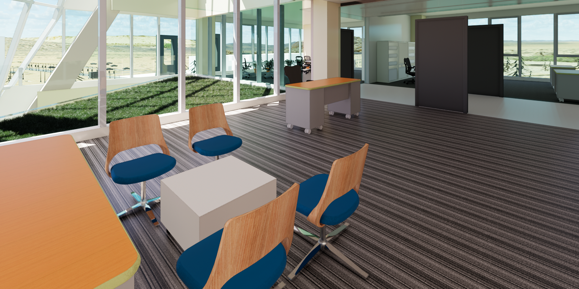 This modern, sustainable office complex is designed based on an open-office concept.